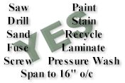 The CWS DECKING SYSTEM features a surface pleasing to the eye and gentle to your feet. Max Burns, the author of "THE DOCK MANUAL" writes in the September/October 1998 edition of COTTAGE LIFE: "But does it look like wood? Begrudgingly, I have to admit that the brushed exposed surface (which provides traction and a surface for paint and stain to bond should you want to change colour} does come very close."